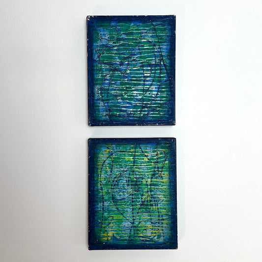Vintage Abstract Diptych Paintings- Set of 2