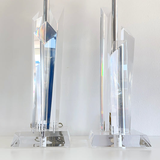 Mid-Century Astrolite Lucite Prisms Lamps- A Pair