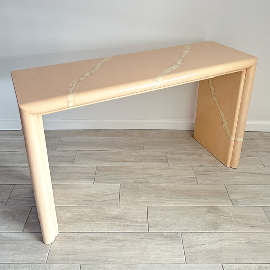 Maitland Smith Tessellated Stone Pedestal Console Table With Brass Inlay