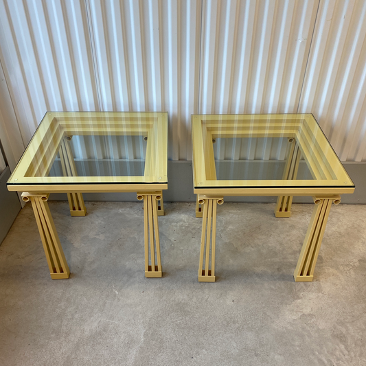 Alfrank Designs Postmodern Ionic Column Lacquered Wrought Iron Side Tables With Glass Tops - a Pair