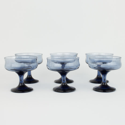 Mid-Century Modern Blue Champage Coupe Glasses - Set of 6