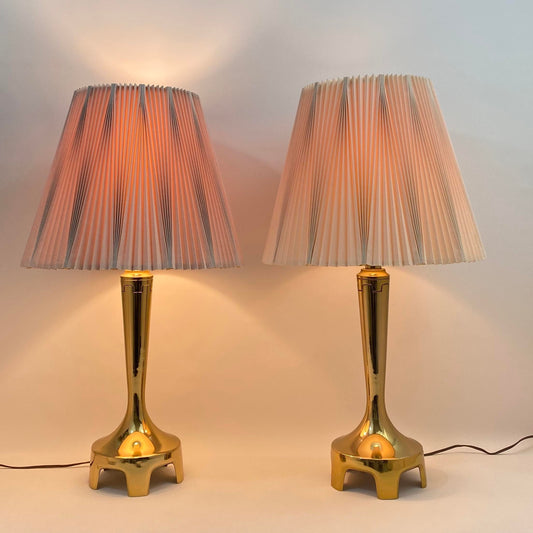 Laurel Lamp Co. Footed Brass Lamp Pair With Pleated Shades