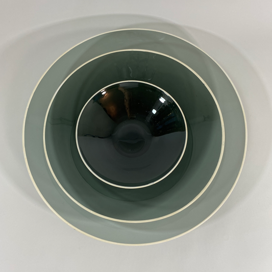 Mid-Century Modern Smoked Glass With Painted Stripe Serving Dishes- Set of 3