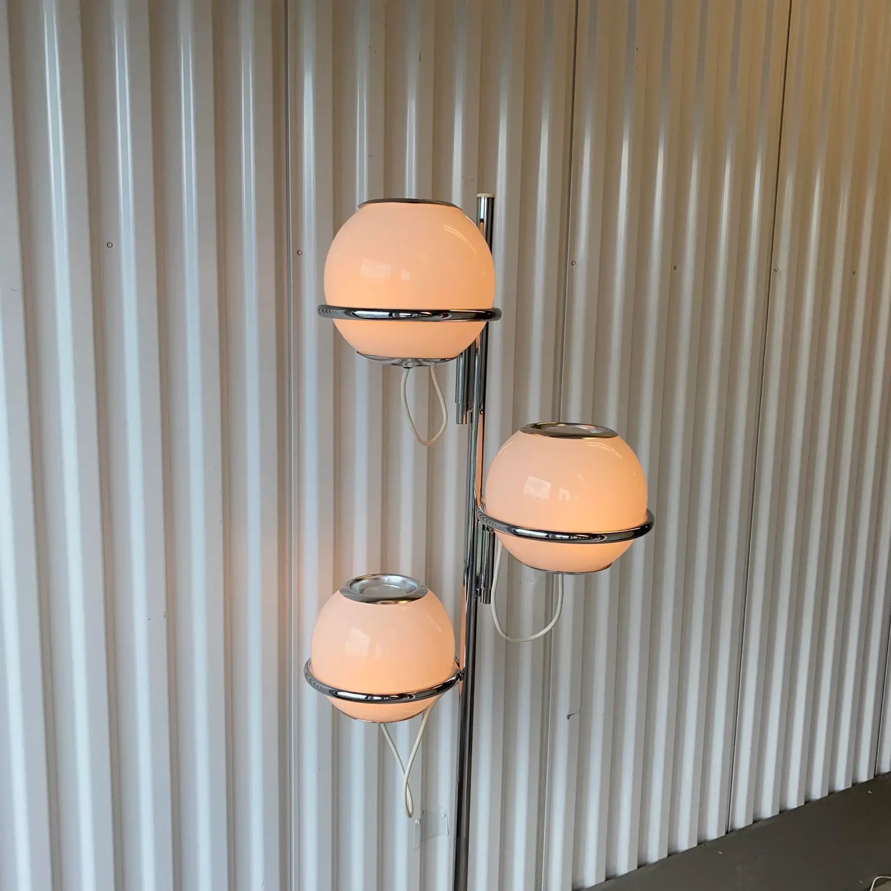 60s Reggiani Three Orb Chrome and Marble Floor Lamp