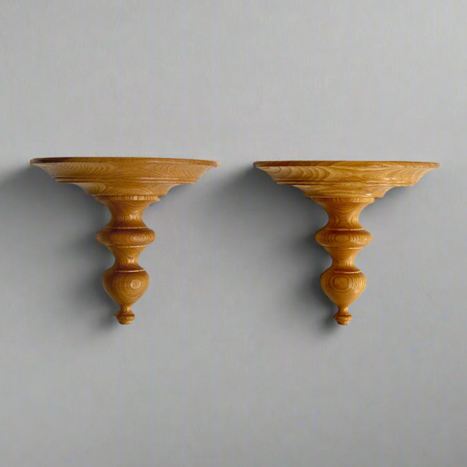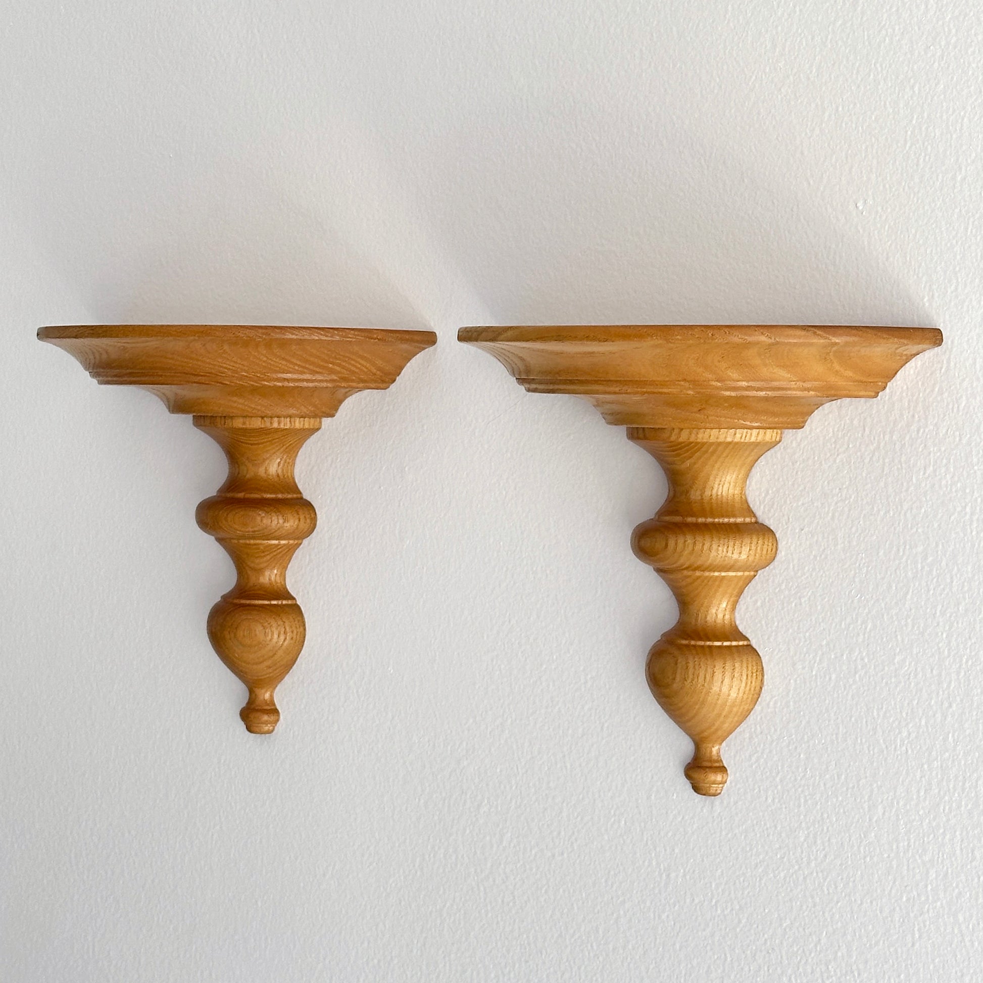 Vintage Carved Oak Wood Wall Shelf Sconces- A Pair
